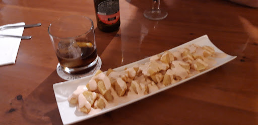 El sitio es agradable pero como suele pasar con estos lugares monos la comida es un ROBO. 5 eur unas bravas escasas y con una salsa mediocre, una "tabla" de embutidos 12 eur que no incluye tostadoras ni pan alguno y que consiste exactamente en: 4 rodajas finísimas de chorizo, 4 de longaniza, 4 de lomo y 4 salchichon. Los dados de queso ya es una vergüenza 6.75 eur un recipiente cuadrado pequeñito de esos donde normalmente tiras los huesos de oliva... podéis imaginar la cantidad. Es penoso que la gente se aproveche así... Luego se quejan si la gente no hace barri... no quiero pensar que cobrarían en el centro de...
