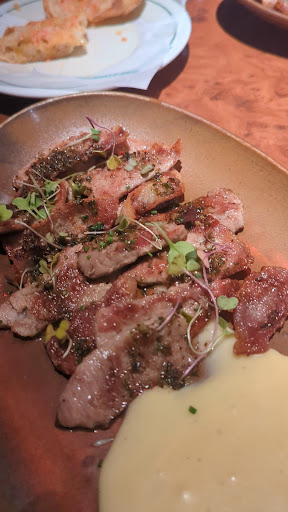 Read moreFuimos a comer hace un par de dias. Se tiene que decir que hay partes buenas i partes malas. Comencemos por la comida, consideramos que el precio por la comida es un poco excesivo ya sea en una parte particular de barcelona, es decir, por tres trozos de pan 3€ no hay logica, despues por unos boquerones salados 12€ es demasiado i encima sin decoracion o algo para acompañar, en canvio la costilla de cerdo esta bien, sin mas, platos no muy grandes mas bien pequeños en cantidad, para una persona estandar dos platos se queda corto, en resumen, por lo que se ve la comida es moderna pero con muchos fallos a solucionar. Por otra banda esta el servicio, tardaron bastante en atendernos, amables pero intensos, insistio mucho en que pidiésemos mas de un plato, pero no tardavan mucho en servir i era amable con clientes habituales i eso nos disgusto mucho ya que cuando nos atendia tenia cara de hacer pocos amigos. Por ultimo el ambiente, un ambiente pobre supongo que por el precio, un local pequeño pero con una terraza muy bonita, tienen originalidad, pero en fin en si no me gusto mucho i no solo por el precio, sino que el ambiente no ayudo demasiado, lo recomendaria, si pero para algun plato en especifico, es un intento de lujo pero necessitan bastantes...