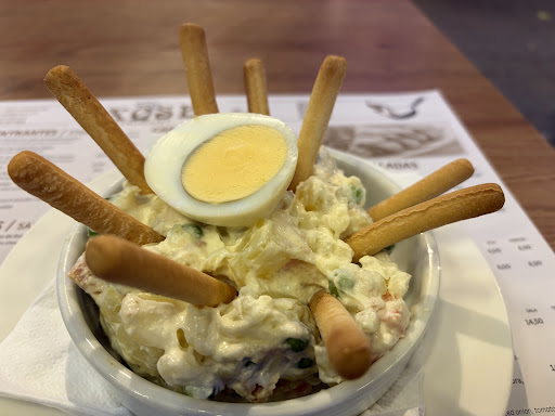 Me topé con este lugar después de caminar más de una hora buscando comida. Había muchas opciones alrededor, pero me resultó muy difícil decidir qué quería. Mi segunda noche en Barcelona y me decidí por una hamburguesa y papas fritas (¡no me juzguéis!). Pedí la hamburguesa Xose porque venía con huevos y tocino. En realidad, no soy una persona de hamburguesas, pero tenía mucha hambre y parecía muy apetitosa. En realidad, disfruté la hamburguesa. Es su hamburguesa característica y viene con una guarnición de papas fritas, lo que era aún más perfecto. Por supuesto, había una barrera lingüística entre mi camarera y yo, así que no tuvimos mucho intercambio más allá de hacer el pedido, señalar y usar Google Translate. No era un mal lugar en absoluto. Muy tranquilo y discreto. También...