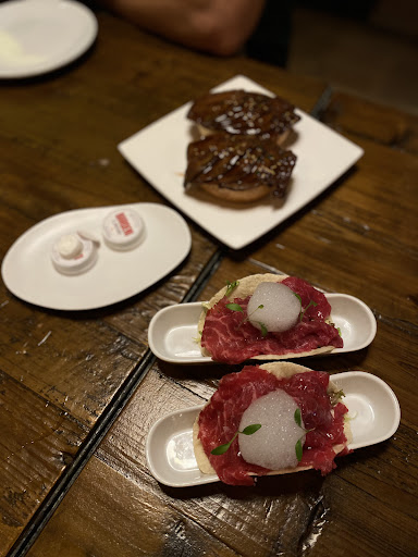 Perhaps if you enjoy raw or undercooked meet, or previously prepared food, or just saying you dined at a Michelin star restaurant, you might enjoy this place. I notice most reviews are quite old, so perhaps this used to be much better. We ended up here after our concierge recommended it for lunch after and due to the proximity to our La Sagrada Familia tour as it was a short walk and the area was filled with mostly take out style and casual restaurants otherwise. We were seated by 1:40 and the restaurant was almost filled at the time. The menu is rather limited to mostly beef, much of it what I would describe as delicacy items for those that enjoy more exotic food, ie sweetbreads, oxtail canneloni, steak tartare. Coming from So Cal near the beach, we have plenty of fine dining and beef options, although do not really care for some of these more exotic options. But, we decided to try to the steak tartare, and play it safe by ordering tuna tataki which is common where we live. We also ordered bottled water, bread with olive oil, two steak sandwiches and two orders of meatballs for entrees (that were supposed to be in a romensca sauce described by waitress as being made with tomatoes and peppers). We never received our water nor the olive oil, but did receive butter which they actually charge you for, as well as the bread. Forgot to check if we were charged for the water and olive oil as that is extra as well. Anyhow, the steak tartare was okay if you are into steak tartare. The tuna tataki was seared rare as described, but it was served entirely cold even on outside like it had been pre-made. In fact, in the red center were several brown spots as if it has been exposed to air. It did not taste that fresh and the sauce was just okay. It was one of the worst tuna tataki dishes I have had. When ordering our mains, we had asked if the meatballs could be cooked a bit more since they are cooked medium rare, and one person in our party asked if the sauce on their sandwich could be on the side, before ordering. We were told by the waitress a flat no with no explanation. We had no idea our steak sandwiches would be prepared rare (although she did mention the medium rare on the meatballs) as there was no mention by waitress or on menu even though we did inquire about it. The meatballs were indeed medium rare as we were told, but the entire meatballs were on the cold side, like they had been prepared about an hour before. Maybe this was because we did not get the food until about 2:40 after the kitchen closed at 2:30. But when we asked to warm up the food, we were told no, again no explanation. Our steak sandwiches also came rare and thus unedible for us and when we also asked to cook them more, we were also told no, also no explanation. When we told the waitress we could not eat them in this rare condition, but she said there was nothing she could do. She did not offer to take it off the bill, nor offer us anything else. She simply walked away. The meat of the meatballs were moist and would have been good had they been freshly prepared and warm. I am unclear what sauce they were actually in as it looked like clear beef broth and had little taste. It certainly was not a tomato and pepper sauce though. We all shared some of the cold meatballs because the rest of our food was not edible at all. The steak was also very fatty as it was very visually noticeable. It was said to be from Kansas. While that might be special to someone in another country, that is not a big deal from someone coming from S Cal. I have to question the people who said this is best meat or beef they have had anywhere, and where else they have dined before. We paid for the food we did not eat, and it was the only bad meal and negative experience we had of our week long trip. I do not usually leave many reviews, good or bad, but I felt I should forewarn others to hopefully prevent them from having a similar...