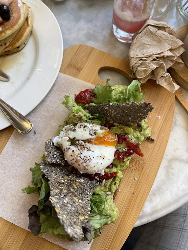 His pancakes were 10/10, extremely delicious, but mine were the exact opposite - they came completely plain, just stacked on top of each other (no syrup or anything between them, just plain, dry pancakes) with two blobs of whipped cream to the side, a bit of fruit and a tiny pot with maple syrup that was not enough in anyway to actually soak the pancakes, so that they're not dry. The end result was just some dry, plain pancakes that, by the time you finish them, you need water to more easily swallow the dry pieces (and the pancakes themselves, not counting the maple syrup, had no taste whatsoever on their own, they were just soft, but completely tasteless).