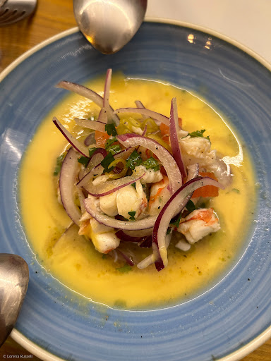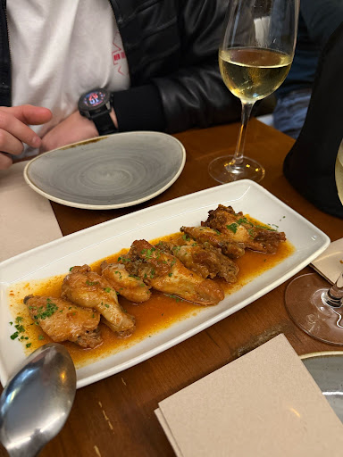 The carpaccio de berenjena was so delicious that we ordered it twice—it was packed with flavor and perfectly executed. The ceviche de langostino was incredibly fresh and citrusy, an absolute standout. The artichokes were also fantastic. The only dish we wouldn’t reorder was the Kimchi wings, but everything else more than made up for it.