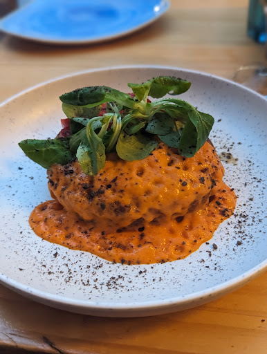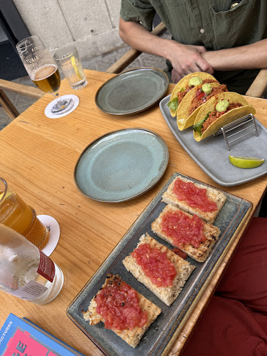 Read moreThe restaurant is in the corner and has a relatively spacious outdoor seating which is excellent in warm weather. The food was incredible - we ordered 4 dishes from tapas menu and also a pizza for the two of us (we hadn’t eaten much during the day, otherwise two tapas dishes and a pizza would have been enough for a dinner). The highlights of each dish: ensaladilla had marinated oyster mushrooms, crunchy tacos were a perfect mix of fresh, crunchy and filling, boniato’s sweet potatoes were perfectly roasted/grilled, but the ricotta was a show-stopper, focaccia was fluffy and warm, and the truffle&mushroom black pizza was all around out of this world! They did not disappoint us with the portion sizes nor how much toppings there were. Of course the drinks were also great - hibiscus kombucha, homemade ice tea (that was not too sweet and it was very refreshing) and tropical caipirinha. And a definite shout out to the servers - everyone was very welcoming and with good vibes. Overall - everyone should visit and experience...