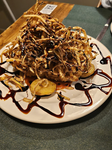 Read moreThe good: The place has a good deco, with plenty of places inside or outside depending your preference. The service is a bit slow but was really friendly and helpful. The menu is in multiple languages (perfect for tourists) with local dishes and tapas with enough plenty of options for vegetarians and some vegan options. The i food quality is ok, and overall was a nice meal. The place is in an ally so the place was relax and quiet.