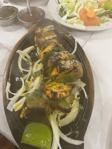 Went here yesterday and ordered the non-veg Thali. The service was great and the atmosphere is really nice as well. The Thali contained salad, daal, chicken curry, Tikka, naan and rice. I want to start by saying that the daal was AMAZING. It was the perfect amount of spicy and tasteful. I thoroughly enjoyed it. The Tikka piece was a disappointment. I actually felt a bit scammed because what they show in the picture and what they offer is very different. It was one piece of Tikka that had been cut in half. It was extremely dry and I could tell it was leftovers from the night before or something. The chicken curry was ok taste wise however it felt like most of the flavor came from chicken powder/chicken cube. And while the curry wasn't stale, it was very clear that it wasn't freshly made. It again felt like they had reheated food from last night and even that in the microwave not the stove. The chicken had this specific taste that only reheated chicken has. This was disappointing. The naan was lovely and so was the gulab jamun. The salad was also very fresh. For 14.5 euros I found it quite filling but was left very disappointed by the Tikka piece and curry. My recommendation would be to not order the Thali, especially if you are one person because I think the quantities are smaller so they don't feel like it's worth making fresh portions and instead serve reheated food. I was sat right next to the kitchen and could hear the microwave being used over...
