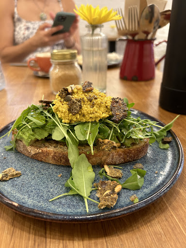 Read moreCreative menu with delicious, nutritious vegan dishes for brunch. The shakshouka and falafel bowl were both very tasty and came in generous, filling portion sizes. Their cappuccino was one of the best I've ever had! The sweet dishes, pastries, and desserts looked amazing as well (especially the croissant french toast), but we were too full from our main dishes to try them (maybe next time!). They also have lunch specials starting at 12:30 - a main dish, soup, and dessert for only 15.90 euros.