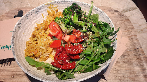 This is a very nice Buenas Migas store located on the bustling Diagonal Avenue of Barcelona, in the Poblenou neighborhood, across from the Glòries Mall. This is the biggest store I have visited, with plenty of indoor and outdoor seating, delicious food, snacks, coffee, and tea. I like how they add a shot of espresso according to the size of the coffee, i.e. 1 in the small, 2 in the medium, and 3 in the large.