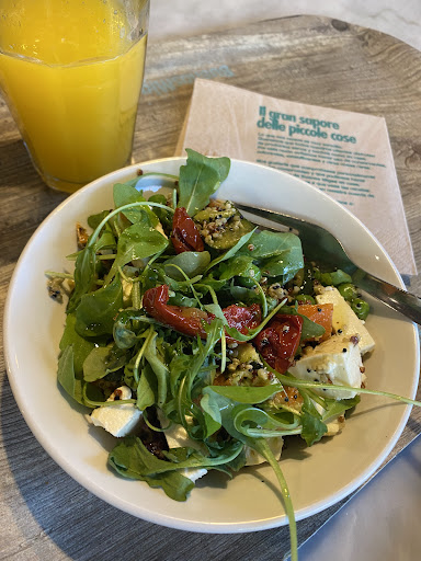 Read moreCadena de focaccerías que puedes encontrar repartidas por Barcelona. Variedad de focaccias en porciones, también quiches, ensaladas, pasta y amplio surtido de dulces. Una porción cuesta cuatro euros la más económica (la de tomate y queso, por ejemplo). Están bastante ricas, con una masa ligera y esponjosa. Siempre te ofrecen completarla con rúcula y puedes sazonarla a tu gusto con aceite de oliva, aceite picante, orégano.... Suelen tener unas más o menos fijos y , de vez en cuando, van sacando otras aunque no están disponibles en todos los locales. Además de la de tomate y queso tienes la de tres tomates, la de butifarra y cebolla, brie con puerros , calabacín con cherries, pollo, pimientos, tres quesos..... Los precios son un poco elevados para lo que es el tamaño, pero la calidad del producto es buena y te resuelve una comida rápida a cualquier hora del día. También hay una gran variedad de bebidas, incluyendo infusiones, zumos, Matcha Latte etc. Los precios de las bebidas sí que disparan bastante la cuenta. Los locales comparten estética y diseño, pero algunos son más agradables por el tamaño o por la disponibilidad de terraza. En concreto el del centro comercial l'Illa me gusta bastante porque es muy amplio, tiene una gran terraza y no es tan ruidoso como otros más antiguos que ocupan espacios reducidos y están en lugares céntricos, por lo que se llenan bastante de gente. El servicio es bastante amable pero no lo puntúo con cinco estrellas porque no hay...