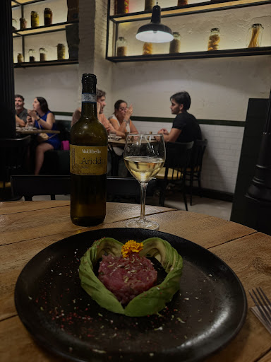 The food here was simply amazing! Original Italian food filled with the best taste of Italy! Our evening here was very satisfactory, nothing was missing and our servitrice Sara was perfect! I had a pizza with ruccola and serrano, which was also amazing. The atmosphere was also great, it was a bit noisy, but that is to be expected in a restaurant with so many happy customers! If I ever come back to Barcelona, I will definitely stop to eat here again! 🍕🍷🇮🇹💯