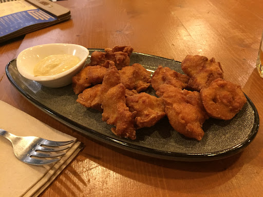The food was mediocre overall, and overpriced. The waiter forgot to give us cutlery and napkins so my friends had to request cutlery to be able to eat their food, after waiting patiently for about 10 mins. Two of the group ordered tuna tacos not knowing that it would be unappetising, lukewarm, raw tuna, and they couldn't finish it. One friend ordered the mussels starter and was warned that it was a small dish - but we didn't think she would receive canned mussels, still in the can..! Another friend ordered the seabass main course but she, on the other hand, was not warned about how small it would be. One friend asked for a burger without the bun and this seemed to baffle the waiter, despite the fact that the restaurant advertises gluten free options. I ordered a salami and tomato paste ciabatta, which cost €4.99 and I was disappointed to find that no salad or garnish came with it and the tomato paste was almost non-existent. I had bought a similar sandwich from a bakery earlier that day for €3.50, which was nicer and full of fresh salad.