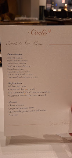 Read moreMy friend and I chose to dine at Caelis on Friday 15th August. We decided to go with the Celebration tasting menu, and for a bottle of wine + 2 glasses of red wine it came up to about 500 euros...so for that price we expected to be blown away...but we were not.