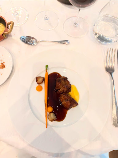 And the food? Competent, yes. Thrilling, no. The red mullet in bouillabaisse had the right flavours: deep, brothy, saffron-rich. But then one portion arrived half the size of the others, with skin the colour of a rainy pavement. The pescatarian at our table was short-changed with a stuffed zucchini flower where everyone else had cannelloni, and later a small pithivier instead of smoked veal. That is not being accommodating. That is a downgrade. Meanwhile, one guest was not even given cutlery for their main course. The Robuchon potatoes amounted to a single tablespoon. A tasting menu should leave you excited, not wondering if there is a kebab shop still open.