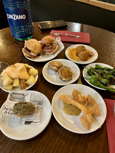 For tapas it was ok, for a drink and snacks I would recommend it. Don’t come here thinking you’ll get cheap authentic tapas, you’ll get an authentic experience with some light bites and the drinks are cheap. Glad we tried it though! The little burgers were really good, the potatoes with the cheese weren’t anything special and the calamari croquettes were tasty. The meatballs just tasted like they were frozen and heated up but def try the Brie