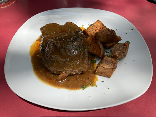 Lovely, surprisingly quiet, and sophisticated dining in an otherwise bustling area. Impeccable service and amazing food in a beautiful space full of original art done by the owner, who also happened to be working as a server. The food is exquisite, so good in fact that we had two dinners in a row in a city with myriad options! The duck is succulent with amazing sauce, the tuna seared perfectly, the veggies tasteful and crisp, and the bread a perfect complement. Even the Basque beer, Keler, stands out from neighboring options. Able to walk in and sit immediately on a Friday and Saturday evening. Service was prompt and friendly, food served...