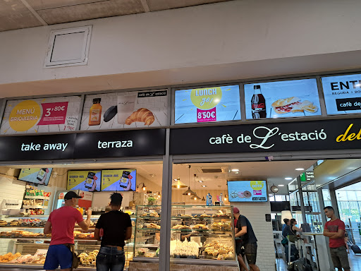 Read moreFranquicia normal este tipo de locales que hay dentro de las estaciones. Tienen buena oferta de productos pero tampoco suficiente como para comer, aunque hay muchos bocadillos y pastelería relativamente de calidad. La que atiende es simpática y los precios en general son decentes, no hay muchas promociones baratas destacables pero en general no se puede comer bien a un buen precio. La comida parece hecha allí de forma “casera” (excepto algunas partes de bollería que saben más a típica pasta de bar), así que destacar el tamaño de los bocadillos, los cuales recomiendo personalmente. Tienen también una sección con caramelos y chucherías, lo cual es original y no he visto en otras franquicias. Es un sitio muy grande con mesas dentro y estufas para el frío.