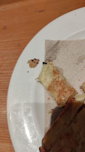 Mal, muy mal. Hemos ido a comer dos amigas y yo y nada más entrar nos encontramos con que la mujer que nos atiende no sabe hablar en catalán, la compañera le ha tenido que traducir la palabra "truita" en fin. Yo ya de por si soy una persona muy esquisita para comer, y normalmente me suelo pedir un bocadillo de tortilla en los establecimientos para que no me sorprendan para mal. Total, le pedimos un bocadillo de tortilla para mi, y veo que tiene intención de ponerme uno de los que tienen ya hechos en el mostrador, el cual llevaba tomate, y le pido que si me puede hacer uno sin tomate. Pues coge y me abre un pan y me pone una tortilla de patatas (que yo me esperaba una tortilla francesa, porque sinó le hubiese pedido una tortilla de patatas expresamente) con la tortilla sacada de otro bocata (uno que llevaba tomate, lo podéis ver en la foto de abajo) y lo recalienta. Bueno decido pegarle un bocado y la impresión que me ha causado la tortilla no ha sido muy buena, ya que personalmente me gusta la tortilla de patatas bien hecha y esta estaba poco hecha. Total he optado por comerme solo el pan y dejar la tortilla. A mis amigas también les han dado bocadillos recalentados con los trozos de queso quemado que sobresalían del bocadillo. XD, la botella de agua que me he pedido tiene restos de comida, no sé que es pero al menos me consuela el hecho de que la botella estuviese cerrada. Lavabos sucios y sin papel y la puerta por la que accedes a los...