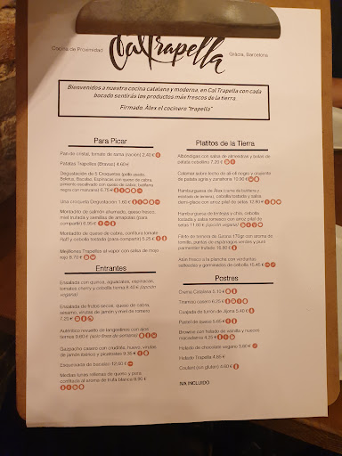 Read moreA really nice surprise in Gràcia. We decided to go to Cal Trapella because we just happened to be nearby, it turned out to be the best decision we could have made. The food was simply amazing, we asked for some suggestions from the incredibly nice staff (I forgot to ask his name...) and ordered the Bravas, Mussels and Meatballs. Every single one of the dishes tasted unbelievably good and the desserts we ordered, Coulant with ice cream and cheesecake with red fruits jam, were also equally great. We had a really nice time and if you happen to be looking for a place to eat around Gràcia look no further, Cal Trapella is where...