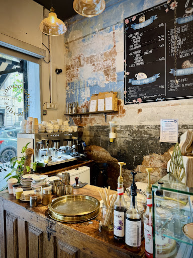 Read moreNot the first time I come here. The style /decor is very vintag-y/ art-y; vintage teacups and china from England (and not only), vintage chairs, tables, vitrines... Nevertheless there is a changing variety of cakes and tarts, even vegan options, from creamy to more dry ones. The presentation on the dish fits to the cake, from dry edible flowers to syrups, as far as I have seen. There is a variety of coffees and lattes, with not so usual options, like lavender or jasmine (apart from the classic ones), but also do not expect to find "usual" prices. And of course the quality is one of "home made with love and brain". You can also buy products for the preparation of coffee at home. I had the luck to go at a time when it was not crowdy at all so had a lovely chat with the personnel. All in all, I recommend it if you want to taste something new and transport yourself to another era, or if you are tired of the everyday same looking white cups for your coffee :-D Or just to enjoy...