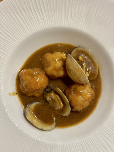 This place was a bit of a mixed bag. While the food was really excellent - we both had the six (or seven?) course set menu - and offers interesting combinations plus a lot of culinary bang for the buck, we noticed quite a few rough edges. The overall atmosphere was, well, rather rustic, with a couple of (too bright) lights dangling from the high ceiling. The service started off well, then turned rather lacklustre. The 80s playlist blaring from the tinny speakers didn’t help. Neither did the two bottles of wine we, well, tried: The first was a 2021 Endogen Vermell, a Rosé which tasted nothing like the description on the menu. It arrived cloudy and with a smell of sherry - signs of a wine well past its prime. (A gentleman behind the counter tasted the wine, and insisted that it was fine. Oh well.) We agreed to pay for the bottle, yet had it replaced with a Spanish Riesling/Viognier blend. The bottle which arrived was a 2018 vintage, i. e. five years old. Uh oh. This wine again had the tell-tale sherry notes of a wine past its best-before date, and tasted of not much beyond sour. Maybe we had really bad luck, however, while we can highly recommend the excellent food at this place (the deserts were simply amazing), maybe better have it...