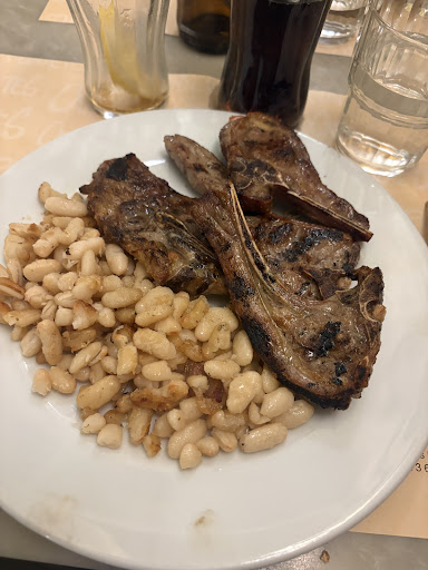 Mi pareja pidió la chuleta de cordero por 16 €, pero lo que recibió fueron básicamente tres pequeños bocados de carne y el resto puro hueso. Una vergüenza.