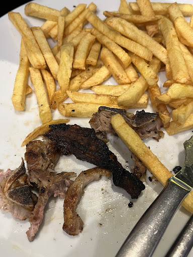 El plato principal la cosa mejora, hemos pedido distintas carnes a la brasa que estaban decentes, ni bien ni mal. Eso si, la "guarnición" por llamarlo de alguna manera... Un surtido de verduras que acompañaban a media patata a la brasa que para la cantidad de verduritas que han puesto, hubiese quedado mejor que no la hubiesen puesto ya que era ridículo, daba pena ver los 7 trozitos de verduritas.