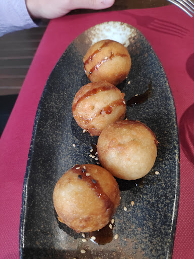 Read more"Se come bien, pero no mata". Este ha sido el comentario generalizado de mis compañeros al levantarnos de la mesa. Menú de mediodía compuesto por entrante, primer plato, segundo plato y postre o café. Bebidas incluidas. 13€. Platos de raciones 'Ferran Adrià', en cuanto a tamaño, claro. No sales con hambre pero tampoco quedas lleno. Las bolitas de pulpo podrían llamarse más bien de patata. Los calamares rebozados tienen gusto a calamar pero el calamar no lo hemos visto. El rebozado de éstos supuestamente es de tempura pero a mi me ha recordado al que me comí el año pasado en la feria de abril. Los segundos platos han sido más generosos, todo hay que decirlo. No hay foto pero el arroz con pollo estaba bastante soso (hemos tenido que bañarlo en salsa de soja) y los Maki y sushi no eran nada del otro mundo (como los que puedes encontrar en cualquier japonés regentado por chinos). De postre, el mascarpone con frambuesa no estaba mal. El helado con bombones de macadamia es bastante soso. La atención ha sido buena, aunque falta profesionalidad por parte del servicio (no puedes servir los platos metiendo el dedo...
