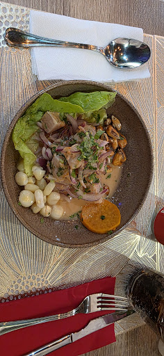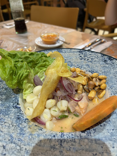 Read moreHoy me pase por el local para probar la comida pero sinceramente no me gusto, pedí un menú con extra de ceviche, del cual el chico ni sabía que era entrante sino me decia que los dos platos que pedía eran 2do, le explique que es la carta pone entrante, 2do me pedí un plato de arroz chaufa con combinado de pollo, el ceviche esta normal pero no entiendo porque le ponen una enorme lechuga en el plato muy incómodo para comerse el ceviche, luego pregunto por el 2do que era y me dice que casi todo lo que hacen es salteado al wok, que es pollo con vegetales, todo bien. Hasta que me lo trae, el arroz el sabor muy rico pero "combinado de pollo" no es para nada lo que me esperaba eran tallarines con pollo y vegetales vamos un wok, lo cual me comi el pollo y el arroz, solo habia una mesa y yo, y con todo y eso tardo en preguntar y ver si habia terminado o no, que ya habia apartado el plato y con todo y eso no se habia dado cuenta, luego al cobrarme no me pregunto si en euro o chf simplemente puso chf(francos suizo) que debe saber que es mas caro comprar en la moneda de afuera que la local y el deber de un camarero siempre que pida distinta divisa es preguntar cual desea que le cobren y no marcar la que quiera. Y por terminar el dembow dominicano que tenian puesto que no pegaba absolutamente con el ambiente "tropical peruano que tiene...