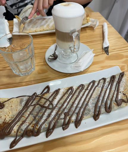 He ido varias veces a merendar y aunque es más caro por el sitio donde está, nunca pensé encontrarme lo que me pasó hoy. Hemos ido a merendar para grabar unos vídeos y hemos pedido para dos, algo más de lo normal para poder tener repertorio y hacer un buen vídeo. Tienen productos vistosos que aunque no son caseros (aunque parece que intentan mostrar eso) pensábamos que era un buen sitio para pararse a merendar después de visitar el mercado de navidad o la zona en general. Hoy, rotundamente es un NO. Pedimos churros con un suizo. La nata obviamente no es casera pero bueno aceptable. Los churros obviamente congelados pero al final están ricos porque son churros. La creoe con nutella está rica también pero pedimos melindros, algo muy típico y que lo tienen en carta, no es algo raro que se pida entiendo y BOOM. Me los traen recién salidos del microondas. Y como lo sé, venían muy resecos y 3 de ellos aún seguían congelados. Se lo he dicho al camarero si al menos podía calentármelos y por suerte los ha calentado un poco más. Lo peor viene cuando lo probamos, secos, como pasados y slguno medio sucio del típico escarchado del congelador. Los he dejado y no me los he comido por supuesto, encima sabían como si le hubieran exprimido un limón encima, raro como poco. Con toda amabilidad, al acabar de comer el resto, aunque ya sin ganas, he ido a hablar a uno de los camareros para poder comunicarle este error para que no los sirvan porque solo pueden dar una imagen propia mala. Real que el camarero me ha dicho vale vale h se ha girado y se ha ido.