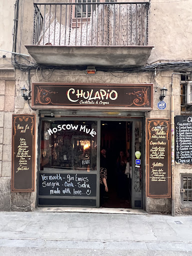 Read moreChulapio is a very special spot located on Carrer d'en Botella, the famous original birthplace of the rumba catalana, in Raval. They offer a great variety of drinks and cocktails; from wonderful premium to more affordable spirits, beer, and ale. Álvaro, the owner and barman, is great at preparing cocktails of all kinds, so many people come just to taste his creations. If you're hungry, Chulapio offers a great variety of delicious sweet and savory crepes any time (even late hours). Moreover, live music is on the menu as well. Chulapio has piano on the ground floor that attracts local musicians who go there and play out of pure love for music + scheduled Piano Bar sessions advertised on their Instagram and led by Leandro Casquero (a great local pianist) who is responsible for coining the verb...