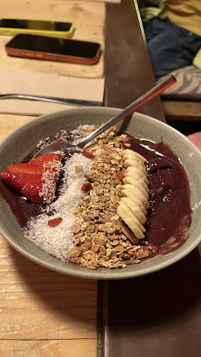 Our waitress seemed a bit annoyed from the start and immediately gave us the feeling that we had to order as quickly as possible. We then ordered something to drink and told her that we wanted to wait for our friend before eating. When we were all there, we ordered blueberry pancakes, the acai bowl and the hummus.