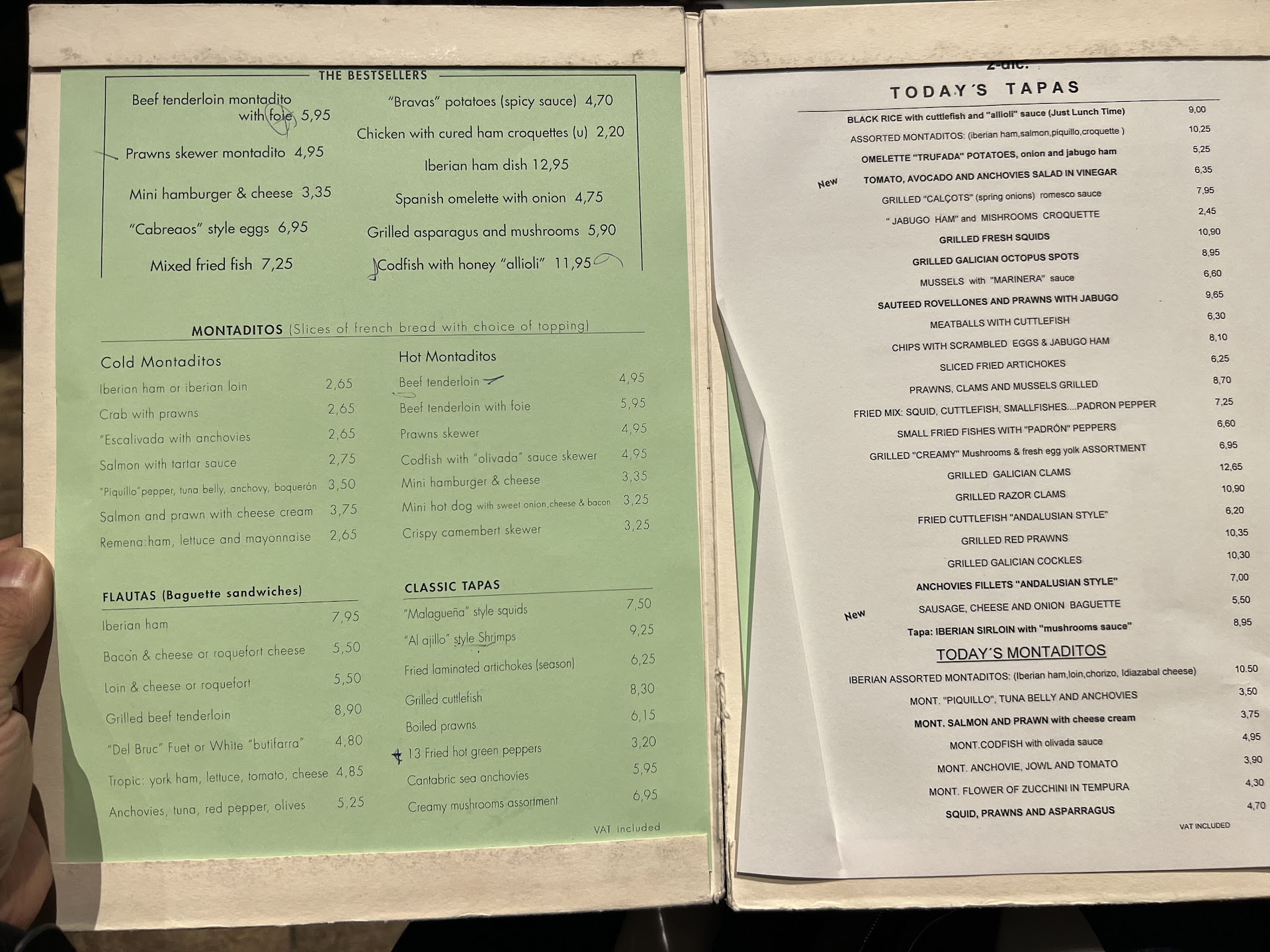 We were a party of four and we ordered a lot of food. I feel that the codfish with honey allioli, the beef tenderloin montadito, the grilled fresh squids, the montadito salmon and prawn with cheese cream, and the anchovies fillets Andalusian style stood out more than the other food that we ordered. Don’t get me wrong, but the rest of the food were already delicious from the start.