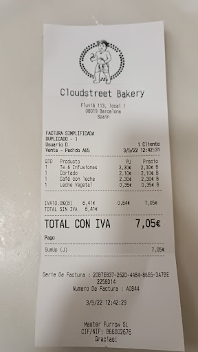 Read moreCloudstreet Bakery ofrece una experiencia culinaria única que ha dejado una impresión duradera en mi paladar. Comparto la opinión general de que la panadería es un lugar encantador con productos de alta calidad.