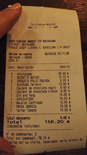 Finally, we're fairly sure the coulant served at the end was the same as you get from Mercadona, but it took 20-30mins to come out the kitchen. We weren't impressed and wanted to leave as soon as possible.