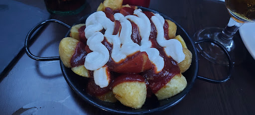 Decidimos probar cuatro tapas diferentes y fue entonces cuando Manolo nos recomendó algunas opciones deliciosas. Su primera sugerencia fueron las patatas con salsa gorgonzola. ¡Y qué acierto fue! Las patatas estaban perfectamente cocidas y crujientes por fuera, mientras que el suave sabor del gorgonzola se fundía en nuestra boca. Fue un verdadero placer para nuestros paladares.