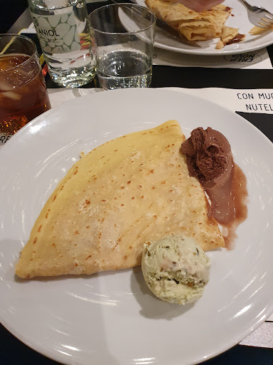 Read moreVivimos cerca y llevamos años yendo a este restaurante. La comida es correcta, pero el servicio es pésimo. ¡Debe mejorar de inmediato! Hace 15 días fuimos por última vez. Éramos una familia de 12 personas (abuelos, padres y nietos) celebrando un cumpleaños con previa reserva telefónica cinco días antes. Su error fue aceptar un domingo a mediodía 4 reservas a la vez de grupos grandes. El caos era tal que para montar las últimas mesas por llegar, les faltaban sillas y mesas disponibles. Unos clientes tuvieron que levantarse sin comer, puesto que necesitaban su mesa para el montaje de las mesas grandes. Tuvimos que esperar 30 minutos para que nos tomaran nota y otros 20 minutos en recibir las bebidas. Avisamos por teléfono de que íbamos con un cochecito de bebé y al llegar no teníamos espacio donde dejarlo ni había espacio para pasar entre las mesas. Nada mas empezar el servicio de comida (13.30h) no quedaba jabón ni papel para secarse las manos en los baños. Los suelos y las esquinas de los baños y del local estan muy muy sucios. Para colmo, el personal es lento, poco resolutivo y con malas caras. Al terminar la comida tuve que pedir tres veces que nos trajeran el pastel de cumpleaños que habíamos traído ya que se olvidaron de traerlo antes y por poco los comensales se van sin provarlo. Repito: la comida es aceptable. Buenas croquetas de jamón ibérico, correctas bravas, rica pasta a la carbonara, pizza con jamón ibérico muy buena y creps aceptables. Pero señores encargados, ¡ el servicio debe mejorar de inmediato! La mala atención hace tiempo que se repite. Por ahora...