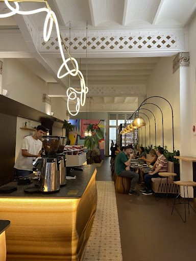 Read moreI had been waiting to try this cafe’s specialty coffee for a long time, and yesterday I had the opportunity to stop by. The place is incredibly nice, very modern and cozy. As for the coffee, it is of very good quality, with no doubt, and I also encourage you to try some of their sweet treats. We went for the lemon and poppy seeds cake and the classic cheesecake. We absolutely loved the lemon cake! The value for money is a bit unreasonable, but in the end, you pay not only for the service but also for the specialty coffee (which is on trend), the place and the location (Barcelona). I would like to point out that, apart from selling delicious coffee, they also sell products and accessories for coffee lovers. You can buy coffee beans there and even grind them yourself. A real...