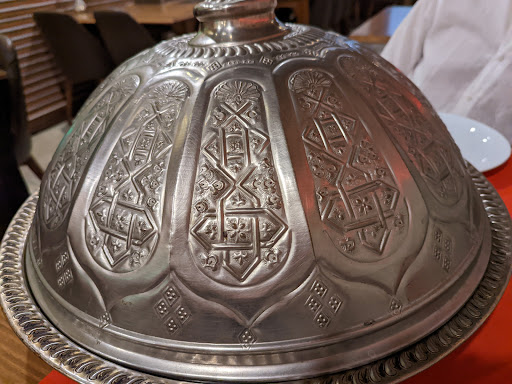 Read moreWe found this place by accident but we’re really glad we did. It was warm and friendly and the food was amazing. We had the sharing vegetarian platter which consisted of about a dozen dishes and breads. It looked amazing, delivered on a huge brass platter under a huge brass dome, and it tasted even better. Wonderful flavours and textures. I never like spinach or aubergines usually, unless my husband hides them in a curry, but I loved them here. The hummus was creamy, the roasted florets of cauliflower in the rice were delicious and the babaganoush was perfect. We were really hungry after travelling all day but couldn’t quite finish all the rice. We really, really tried, though. Not cheap (about €60 for two including beers before and tea after) but great value for a super meal. Planning to visit again next time we’re...
