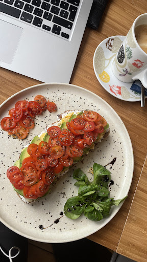 Read moreGood coffee, really nice presentation of food (pictured is the Avocado toast which is nice, but the goat cheese toast is outstanding!), good wifi, however by every other table there is a reminder that only 45 mins per client are welcome which kinda made me feel funky even though the locale was empty and I ended up spending almost 30€ in 2 hours feeling guilty. In short, I will come back for the toast if I feel like it, but not to...