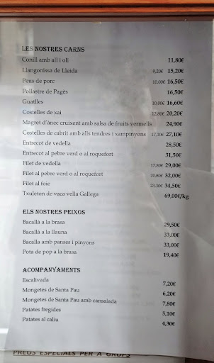 Entre sus especialidades, los caracoles son una verdadera delicia, cocinados a la perfección y acompañados de una salsa que realza su sabor. Los guisantes del Maresme a la brasa son otro de los platos que no puedes dejar de probar, ofreciendo una combinación de frescura y sabor inigualables. Además, el bacalao a la "llauna" es sobresaliente, destacando por su punto de cocción y sabor.