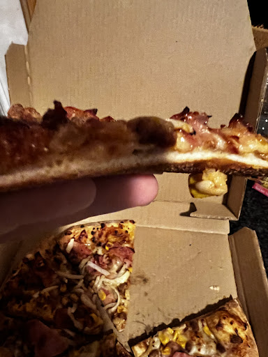 Read moreHemos llamada para realizar un pedido de una pizza familiar a recoger en domicilio en el dominos pizza de la Zona Franca. Familiar , mitad jamon queso champiñones+extra champiñones y la otra mitad campiña por 14€ a recoger en local. En 15 minutos la tenia lista , abro la tapa de carton para revisar la pizza ( ya que no es la primera vez que ocurre algo asi ) y resulta que nos han puesto 5 champiñones mal puestos sin el extra , y la mitad de la campiña ni existía , algún trozo de verdura y poco mas. Reclamo en el mostrador para que me la repitan. Al poco rato me devuelven la pizza en teoria correcta, no la he revisado ya que me he fiado del prodructo, al llegar a caso abro el carton, y era la misma pizza con tropezones de champiñones practicamente sin cocinar, y los bordes quemados. Es decir han pasado la misma pizza con mas champiñones sin renovarla. Entre tiempo y tiempo eso no se podia comer. Hemos reclamado llamando y nos dicen inicialmente que si quiero la pizza que vuelva al local a recogerla. No hemos cedido ya que no ibamos a volver a bajar y se han prestado amablemente traerla a casa. Todo correcto. Viene el repartido y se presenta con una pizza mediana de jamon queso y champiñones.... ??? Hemos pedido una familiar jamon queso champiñones mas extra de champiñones y la mitad campiña. El repartidor de buena fe nos dice que nos qedemos la pizza mediana y que despues me traeran otra del otro gusto. Para eso le hemos respuesto que entre que nos comemos la mediana y nos es de buen gusto esperar entra una y otra. Le hemos devuelto la pizza quemada sin champiñones y la mediana. Llamo para que sepan que esta de camino el repartidor y de buen trato nos dicen que nos traen una pizza correcta familiar de a jamon queso champiñones+extra champiñones y mitad campiña. A los 15 minutos nos traen la pizza familiar, CRUDA, con enormes tropezones de verdura de pimiento verde y cebolla, el carton de la pizza del envase estaba con agua de la mala cocción de la verdura , la masa blanda chiclosa y sin hacer. Es una vergüenza que dominos pizza de este servicio. Entiendo que se puedan generar errores , pero mas me fastidia la espera y el saber que los trabajadores de ese local les da igual servirte cualquier pizza en condiciones con tal de irse rapido para casa. No vamos a volver a pedir dominos pizza en esta zona, hay otras alternativas que aunque quizas o esten al gusto del dominos ofrecen un trato de pos venta mejor que el que hemos recibido. Y no es la primera vez que ocurre, por eso nos hemos decidido a realizar este escrito porque no se puede aguantar esta tomadura de...
