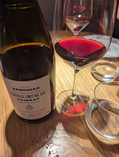 What left me really disappointed was the selection of wines they had. Being in Spain and knowing the exceptional wines you can get for a reasonable price, the medium and light body options were pretty terrible and their most expensive in those areas were... French. It felt like it was trying to appease tourists. It has a few interesting Priorats and thankfully we could go for an Arbossar from Terroir Al Limit which was fabulous but there are significantly cheaper Priorats that they could be offering.