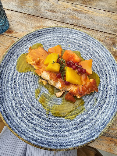 Next, we both selected the salmon with orange sauce, sautéed mango, and papaya. The salmon was beautifully prepared, with a moist and tender interior and a surprisingly crispy exterior, where the fat caramelized to offer a satisfying crunch. Dipped in the orange sauce and accompanied by mango and papaya morsels, this provided a delightful combination of textures and a sweet and savory taste profile. The succulent salmon with orange sauce, sautéed mango, and papaya showcased the culinary expertise of the kitchen, leaving us enchanted by the harmonious interplay of flavors.