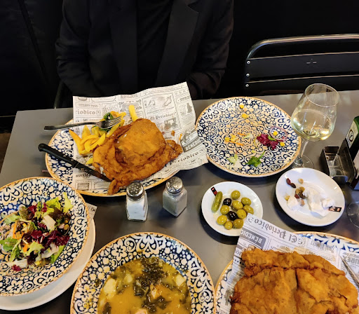 While the food was good, I feel the server was having a bad day. She treated us with disdain from the moment we arrived. I ordered a salad and my husband ordered a soup and we both had the cachopo, which is a really large meal in and of itself. I think the server tried to warn us because she made sure we knew the price of the plate. Everything, and I mean everything, came out at the very same time. This must have caused the staff some humour as they all took turns to come out gawk and have a laugh, including the cook. When I pointed out that there was no way we could eat all this food while still warm at once, her response was to throw the cook under the bus and say he always does what he wants. Obviously we had to box the main meals and take to go. Seriously bad experience, our first in Barcelona. We relied on reviews from TripAdvisor, which BTW they had stickers from TripAdvisor all over their front window. Not a...