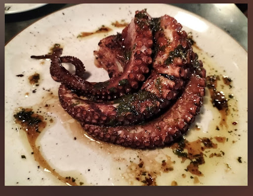 Top things to eat: Dates with chorizo, minced meat, bacon and Roxmouth vermouth, (dátil 5€) Spicy Bombetes with octopus and burnt aioli ( bombetes picantonas 4€) Croquettes with Spanish ham (croquetas caseras de jamón Joselito 3€) Anchovies in vinegar (tapa de boquerones en vinaigre 6€) Grilled octopus and potato with marine chimichurri (pulpo a la parrilla con mil hojas de patata y chimichurri marino 32€)