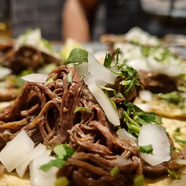 We started off with the aguachile -absolutely spectacular, not just to look at, but the flavours and textures were right up there too. After that, we ordered dishes to share. Grilled birria - honestly, no words. You get five tacos, very generously filled. Authentic! Panuchos- these weren't the highlight, but they were grand. We missed having the option to add our own habanero salsa, and the pickled onions that came with them could've done with a bit more acidity. Arrachera - wow.! The meat was tender and beautifully seasoned. Cheesecake - what a treat! Nothing more to say.. Tres leches cake - this was our least favourite. The ice cream was gorgeous, but the cake itself needed more flavour from the milks and should have been served colder. To drink, we enjoyed guava mezcalitas that absolutely blew us away-lovely flavour, excellent presentation, and honestly, I'd come back...