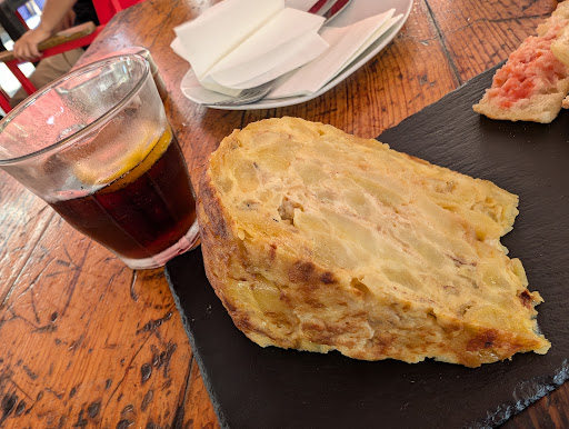 Food is good ( slightly more expensive than others in the neighborhood) but waiting time to order is around 30-35 minutes, that is NOT normal, not even for Spanish standards. Also very noisy, there is music, but the volume is too low so doesn't cover people talking. ... It's a shame, it's the 3rd time when we wait for so long, we will NOT COME BACK again! Also when you see children at the table, you should think about them, but no, they don't care...We told the waiter twice to take our order, she complained she is alone and then she left to arrange a table for next customers, really? Instead of taking our order? She clearly didn't choose the right job! Customer service level is ZERO. Also noticed the quantity for the tapas portions diminished since last time ( not by much but still visible). I would give them 0 stars but...