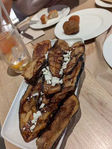 Their prices are rather cheap for their portion size. Hence, we ordered way too much for two. We got the Spanish tortilla with brava sauce which comes with toasted bread topped with tomatoes, grilled octopus with bacon, chorizo, Russian potato salad, mussels, fried eggplant and two cocktails. My recommended must try is their grilled octopus. Not only is it good, the price is cheaper than other tapa places weâve been to (yes, I always order octopus). The rest are typical tapas you can get elsewhere.
