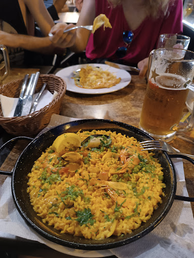Read moreWe were exploring Barcelona and walked past this restaurant in which we decided to enter. It looks quite nice from the outside to the inside with quite a simplistic and homely environment They have a varied menu with typical spanish dishes and more general foods like pizzas and burgers. The vegetarian option is quite wide, ranging from salads, pastas and even paella. I ordered a vegetable paella and it was a tasty experience, since also for me was the first time eating it directly in the “paella” haha. The seasoning was really amazing and flavourful, and the portion was really worth every cent and that lemon they give you with it really elevate the taste! I personally believe that if the chips are good at a restaurant, the rest of the food is usually good. Well, the chips are also good here haha. The staff is very caring, always checking if everything is going okay or if anything is needed, and always ready to provide your asks and needs with speed and efficiency. When I went it wasn’t very busy, so please be mindful if when you is busy and congratulate their efforts!! We left very happy and full, ready to continue exploring...