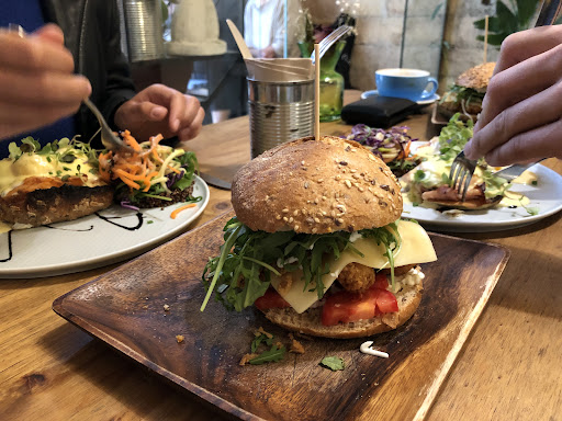 Read moreWhat a lovely place for breakfast/brunch! The food is so tasty and filling it will get you through the miles of walking through the beautiful busy streets of Barca! Not a crumb left on any of our plates, we went back a second time during our stay because we loved it so much! If you are vegan or just craving more variety in your breakfast options they have selections for sweet and savory, breakfast and lunch! We tried the vegan burger, the chicken sandwich, the salty pancakes, the pochados (think of eggs Benedict) and the maple pancakes and they were ALL SO GOOD and not to mention the cappuccino and café con leche. The Vegan burger chefs kiss such a big burger hard to hold with just two hands and so delicious! Staff is friendly and helpful, they have both English and Spanish menu with food and cafe items along with a few...