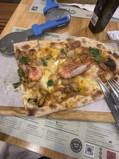 Read moreEl camarero siempre fue muy amable y el servicio bueno pero, pedimos 4 pizzas y una hamburguesa y tardaron muchísimo en traernos la última pizza, cuando lo hicieron, los demás comensales ya habían acabado sus platos. La calidad de la comida es estupenda; tanto las pizzas como la hamburguesa y las bravas que pedimos, estaban buenísimas. No pudimos pedir postre porque vimos que el servicio (desde dentro de la cocina) era lento. No nos sobraba tiempo, porque teníamos que ir al cine pero, yendo sin prisa, se puede disfrutar. Una lástima que solo haya 1 cocinero y dos camareros para un local tan grande (interior y exterior). Falta personal, al menos,...